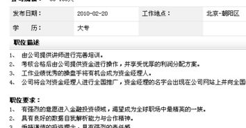 2、金融业务类岗位又分为以下五个类:客户营销类工作职责:客户经理主要是银行与客户交流的桥梁,主要是发掘公司及个人潜力客户,维护客户关系,营销各类金融产品与服务,满足客户需求,开拓市场分额。